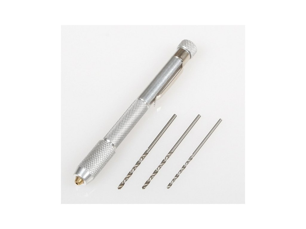 Ruční vrtačka pro jemnou práci se třemi vrtáky.