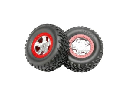 Kompletní univerzální kola pro RC auta Traxxas Slash 1:16. Stříbrný disk s červenými ráfky, nalepenými pneumatikami Off-Road a vložkou. Rozměr disku 38/50x27 mm. Celkový rozměr...