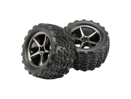 Kompletní univerzální kola pro auta Traxxas Revo 1:16. Disk Gemini v barvě černý chrom s nalepenými pneumatikami Talon a vložkou. Rozměr disku 52x40 mm. Celkový rozměr 80x48 mm....
