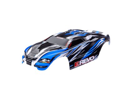 Traxxas karosérie E-Revo 1:16 modrá - hotová nabarvená karoserie, z odolného polykarbonátu, aplikované obtisky. Pro Traxxas E-Revo 1:16.