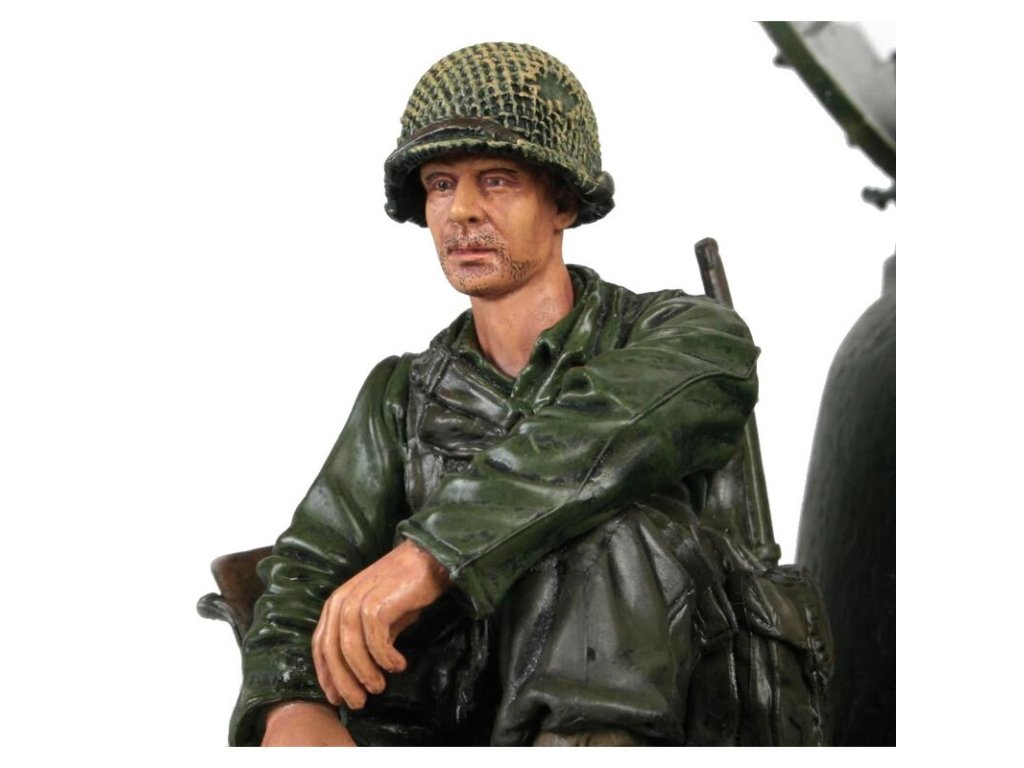 1/16 figurka sedícího vojáka U.S. 1st Infantérie z 2 sv. války, ručně malovaný