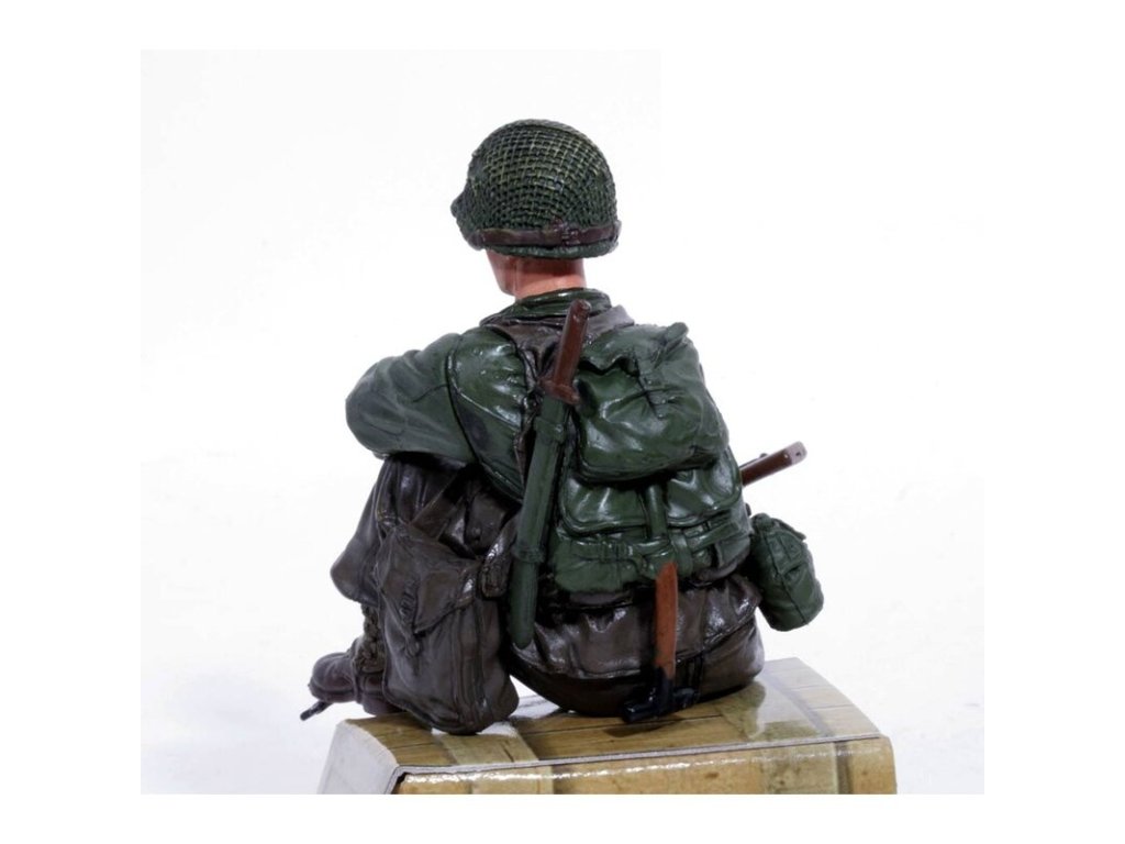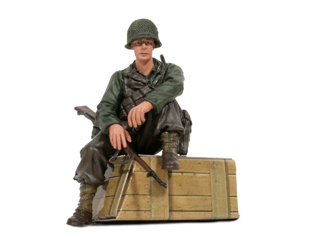 - 1/16 figurka sedícího vojáka U.S. 1st Infantérie