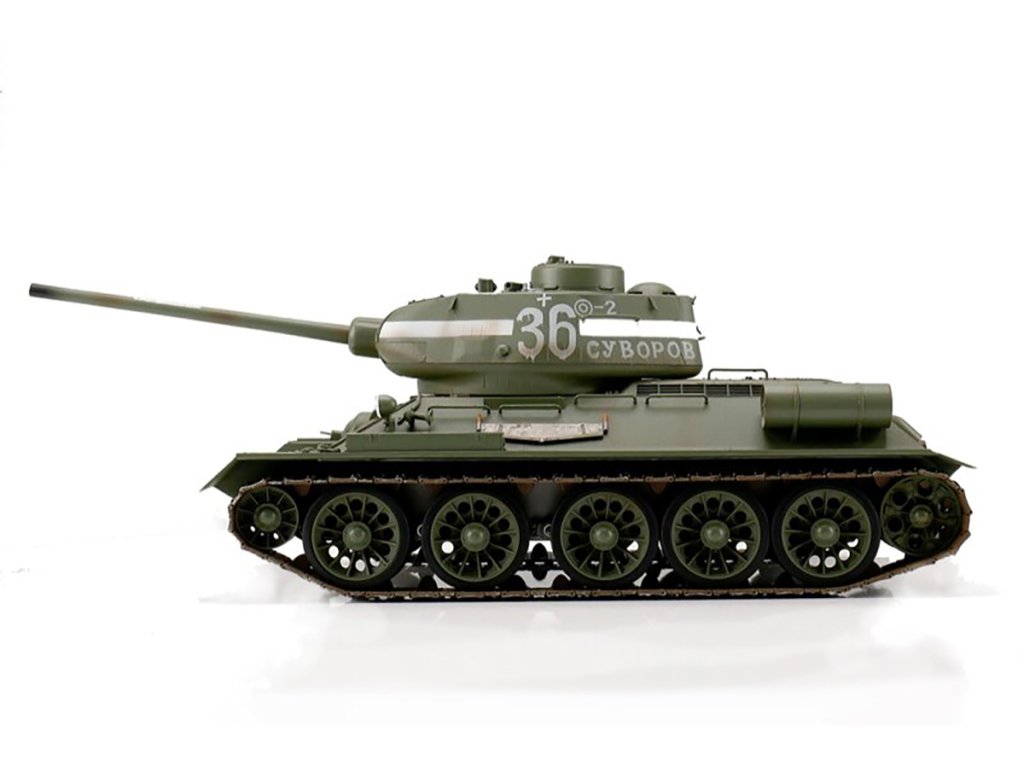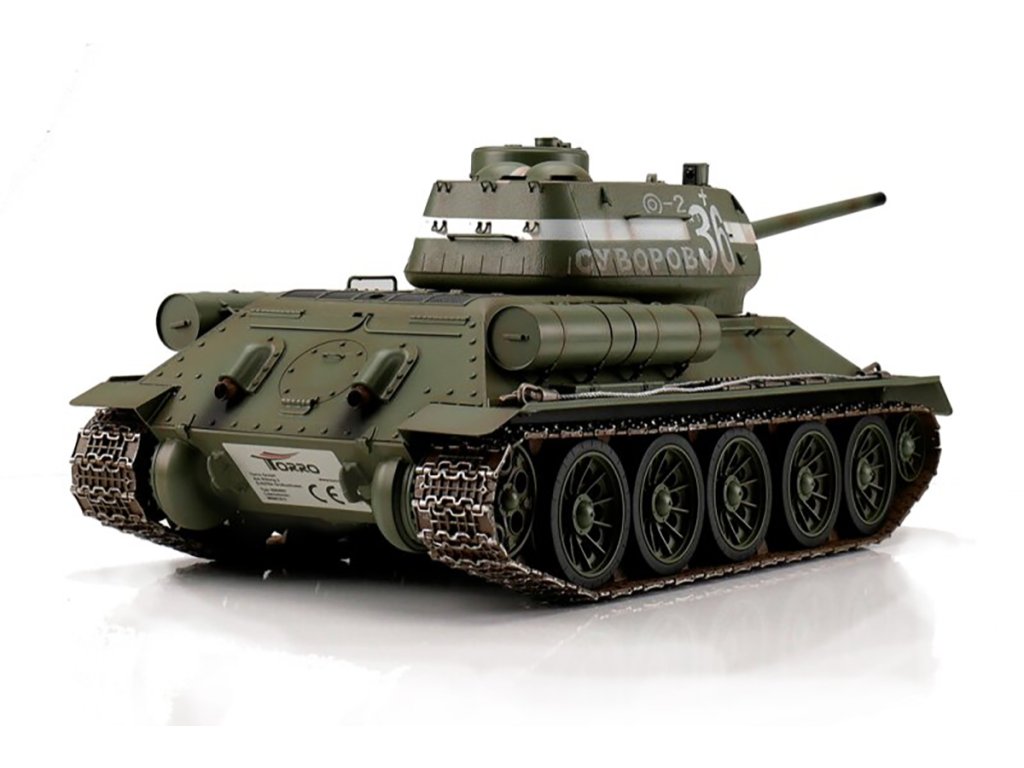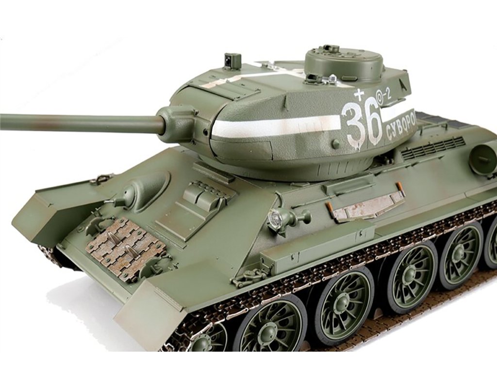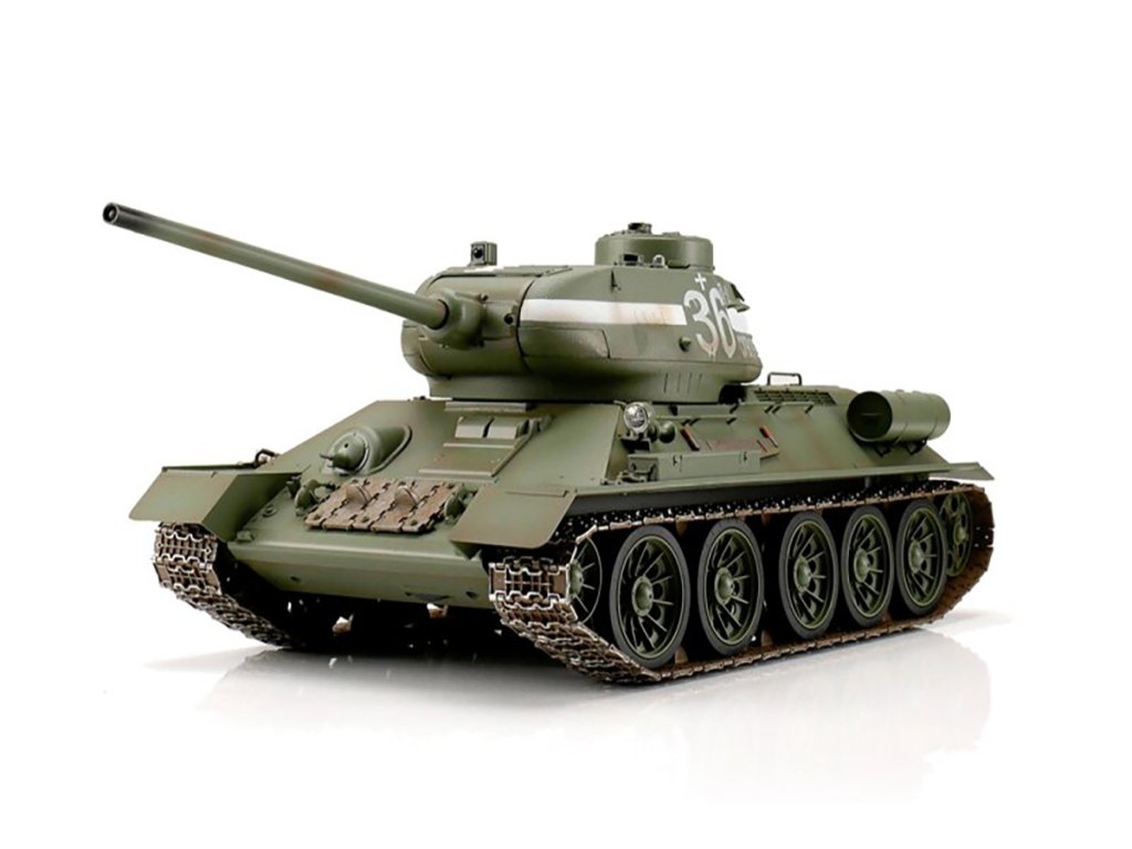 T34/85 byl použit až na jaře 1944. Byl vyzbrojen 85mm kanónem. Zničení tanku Tiger I na vzdálenost 1 km bylo bez obtíží možné. Celkem bylo postaveno kolem 20 000 kusů a Rusové označili T34/85 za „nejlepší tank 2. světové války“. Tento extrémně detailní R/C model z kovárny WSN-Trumpeter-Torro v měřítku 1:16 je k dispozici v zeleném letním maskovacím provedení. Model s jedinečným poměrem cena/výkon, který by neměl chybět v žádné kolekci.