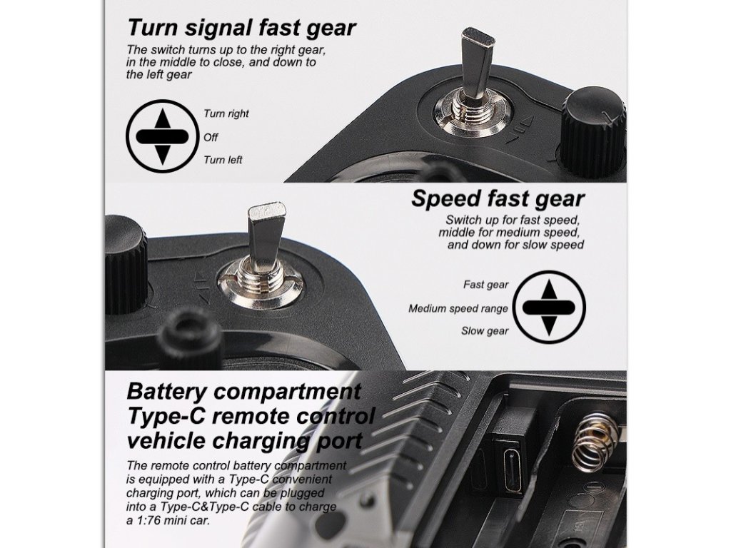Tento RC kamion, připravený k okamžitému použití (RTR), je mezi dálkově ovládanými modely opravdu jedinečným. Model disponuje přesným proporcionálním řízením a ovládáním plynu, jaké byste očekávali od větších RC automobilů, a nabíjí se jako váš smartphone pomocí připojení USB–C. Díky kompaktnímu měřítku 1/76 můžete manévrovat i v těsných prostorech a užívat si radost z vození nákladů s přáteli a rodinou doma, v kanceláři s kolegy, na cestách nebo téměř kdekoli, kde vás jen napadne!