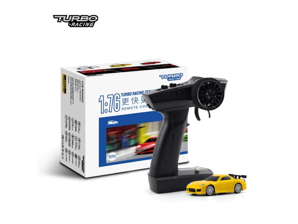 Představujeme první plně proporcionální dálkově ovládané auto velikosti prstu na světě - RC auto 1:76 Turbo Racing. Poprvé v hobby průmyslu s rádiovým ovládáním lze RC vůz takové velikosti ovládat s takovou přesností a jemností. Díky zcela novému patentovanému systému řízení potenciometrem, který je nejmenší svého druhu, můžete ovládat vozidlo přesně tak, jak chcete.