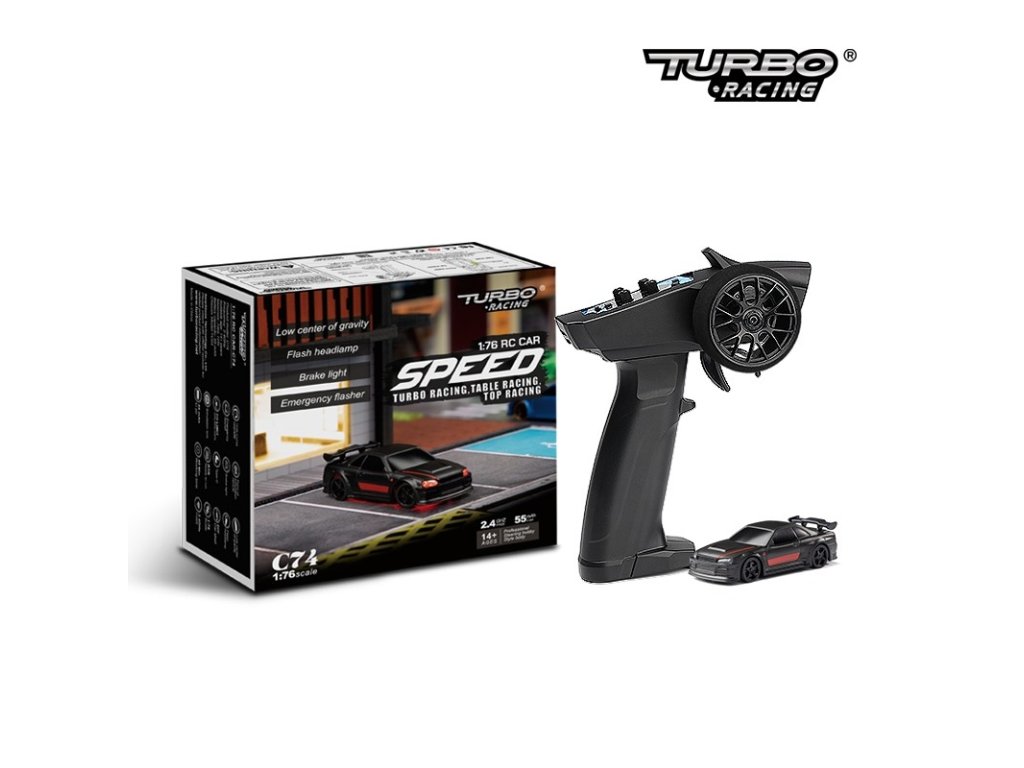 Představujeme první plně proporcionální dálkově ovládané auto velikosti prstu na světě - RC auto 1:76 Turbo Racing. Poprvé v hobby průmyslu s rádiovým ovládáním lze RC vůz takové velikosti ovládat s takovou přesností a jemností. Díky zcela novému patentovanému systému řízení potenciometrem, který je nejmenší svého druhu, můžete ovládat vozidlo přesně tak, jak chcete.