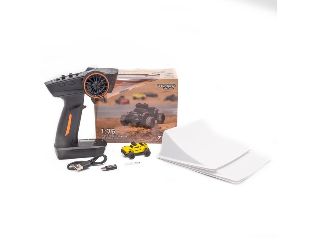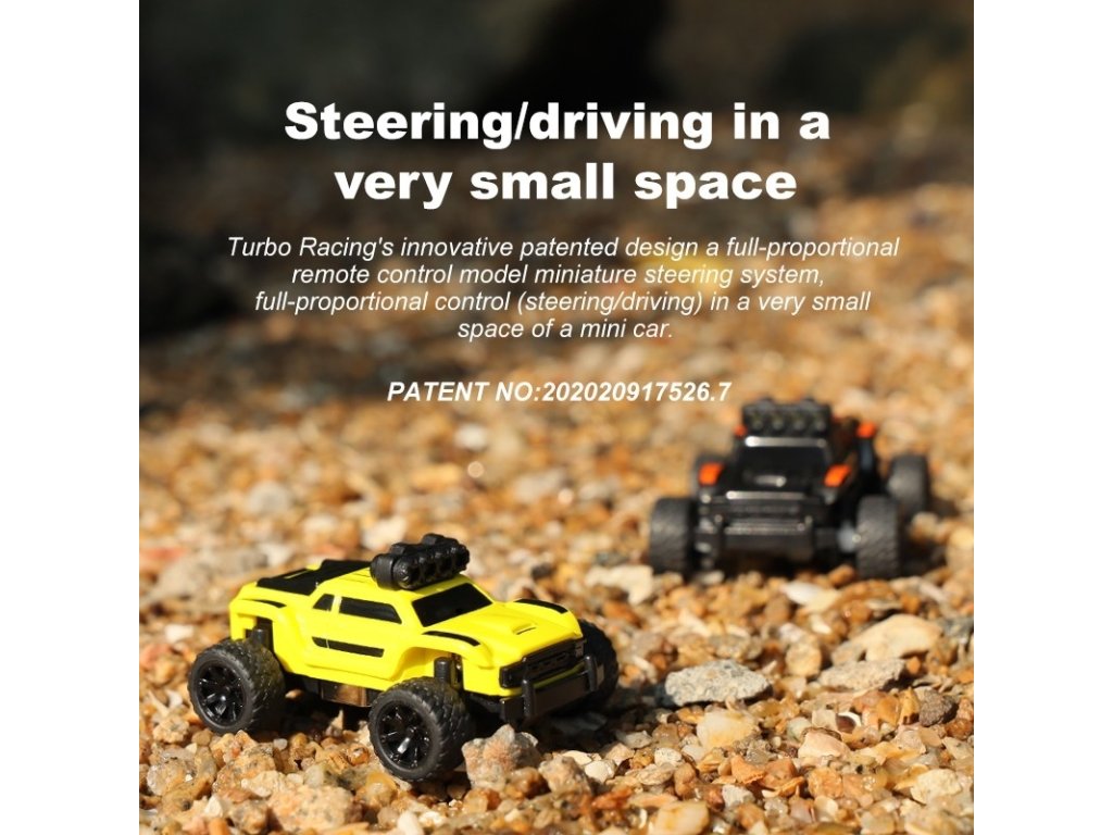 Představujeme první plně proporcionální dálkově ovládané auto velikosti prstu na světě - RC auto 1:76 Turbo Racing. Poprvé v hobby průmyslu s rádiovým ovládáním lze RC vůz takové velikosti ovládat s takovou přesností a jemností. Díky zcela novému patentovanému systému řízení potenciometrem, který je nejmenší svého druhu, můžete ovládat vozidlo přesně tak, jak chcete.