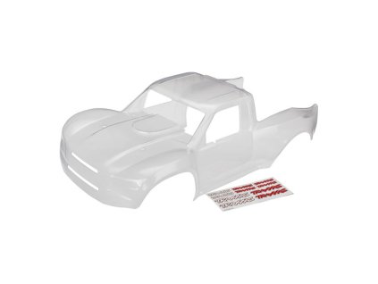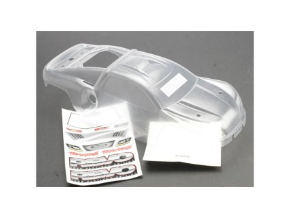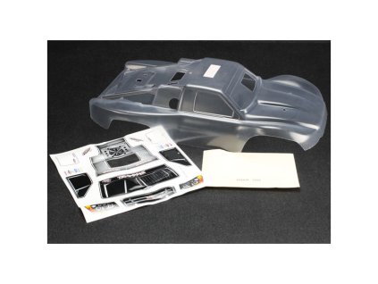 Nenabarvená exanová karosérie pro auta Traxxas Slayer Pro 4x4. Obsahem balení jsou dále samolepky a krycí výseky.