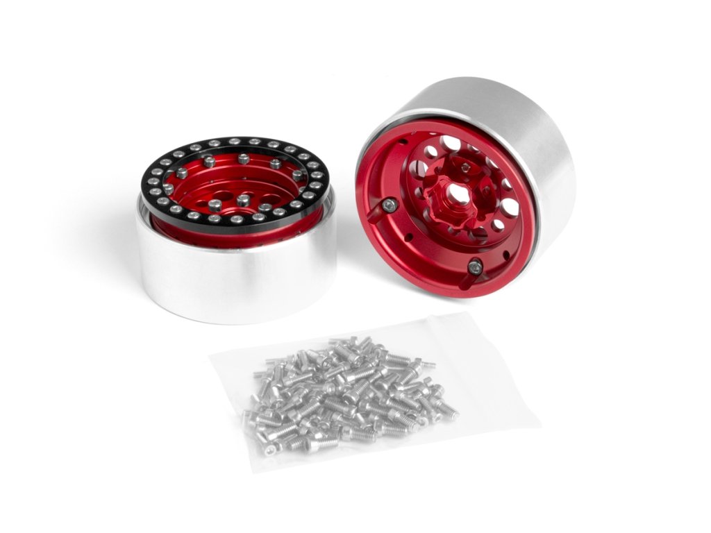 1.9'' Hliníkové beadlock disky pro 1/10 crawler/expedice červené - 2 ks