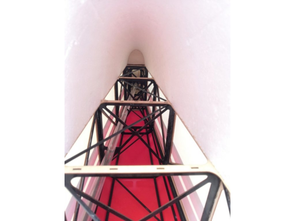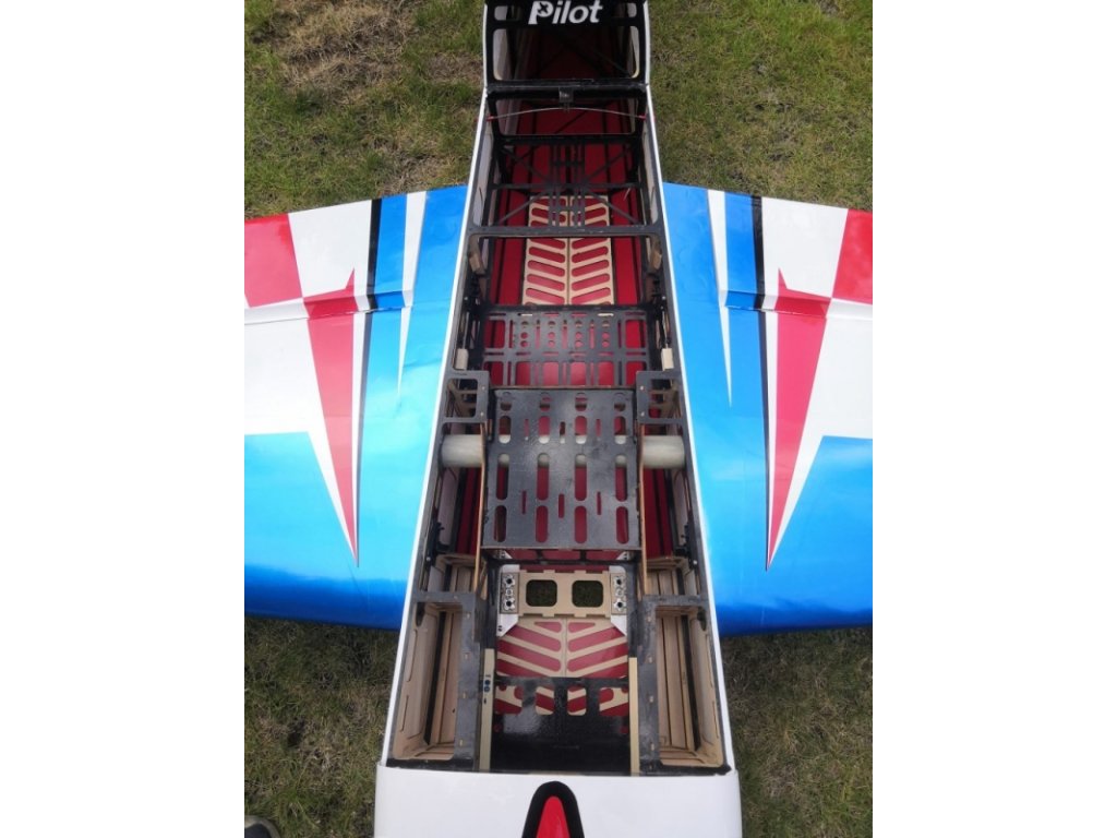 - Zesílený trup a křídla překližkou přelaminovanou uhlíkem a uhlíkovými nosníky.