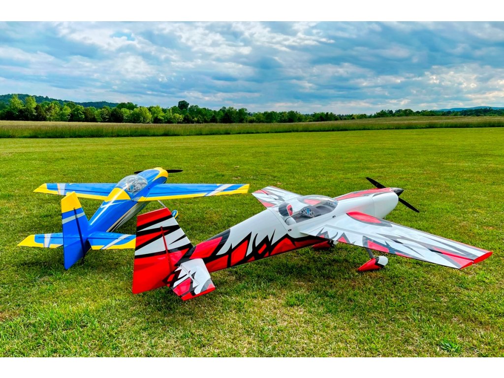 Sportovní polomaketa amerického akrobatického letadla pro pohon benzínovým motorem 85-130 ccm pro zkušené piloty pro létání klasické přesné i extrémní 3D akrobacie.