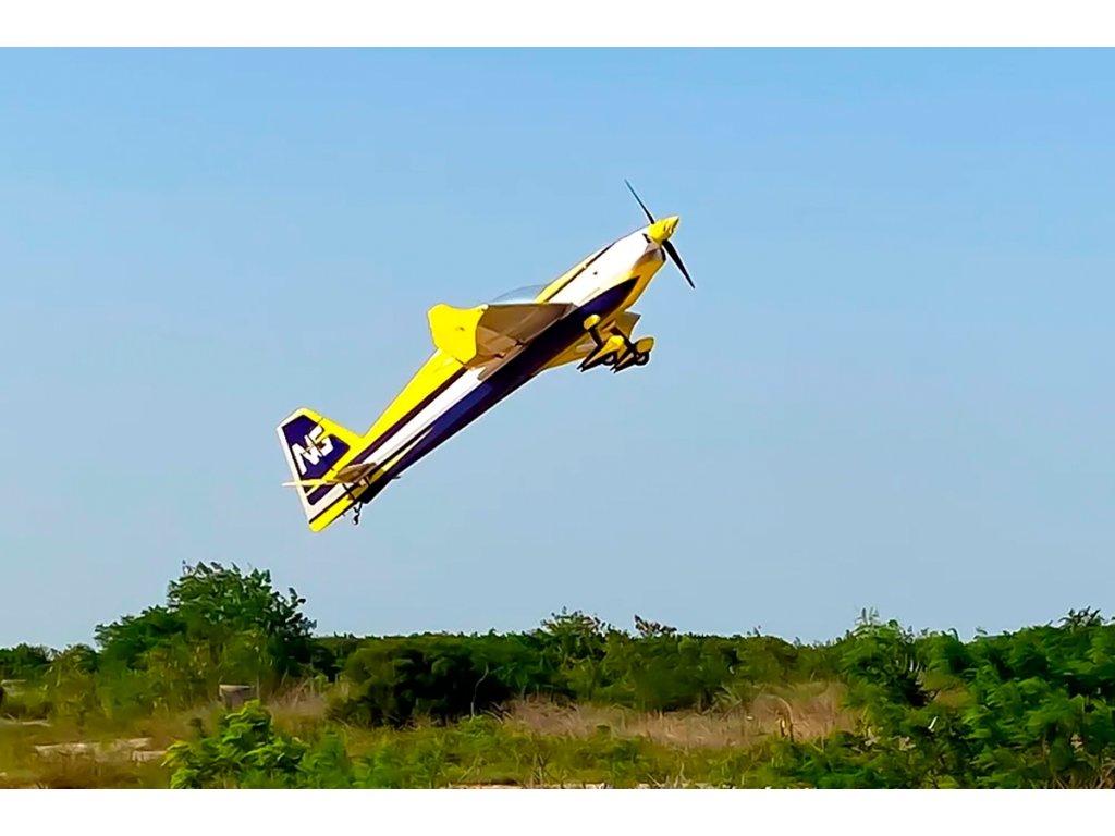 Sportovní polomaketa akrobatického letadla pro pohon benzínovým motorem 100-130 ccm pro zkušené piloty pro létání klasické přesné i extrémní 3D akrobacie.