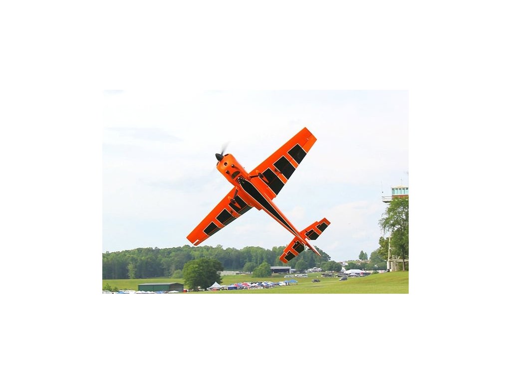 Sportovní polomaketa akrobatického letadla pro pohon benzínovým motorem 100-130 ccm pro zkušené piloty pro létání klasické přesné i extrémní 3D akrobacie.