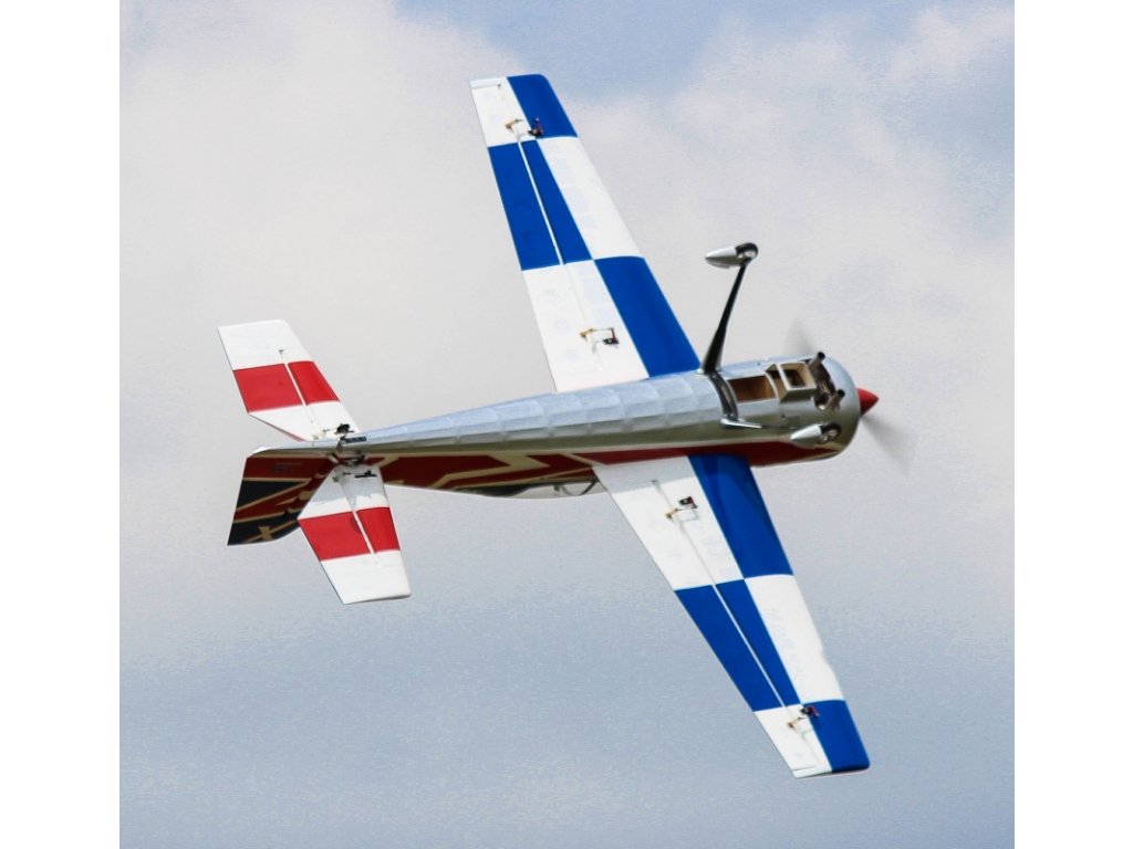 Sportovní polomaketa ruského akrobatického letadla pro pohon benzínovým motorem 85-130 ccm pro zkušené piloty pro létání klasické přesné i extrémní 3D akrobacie.