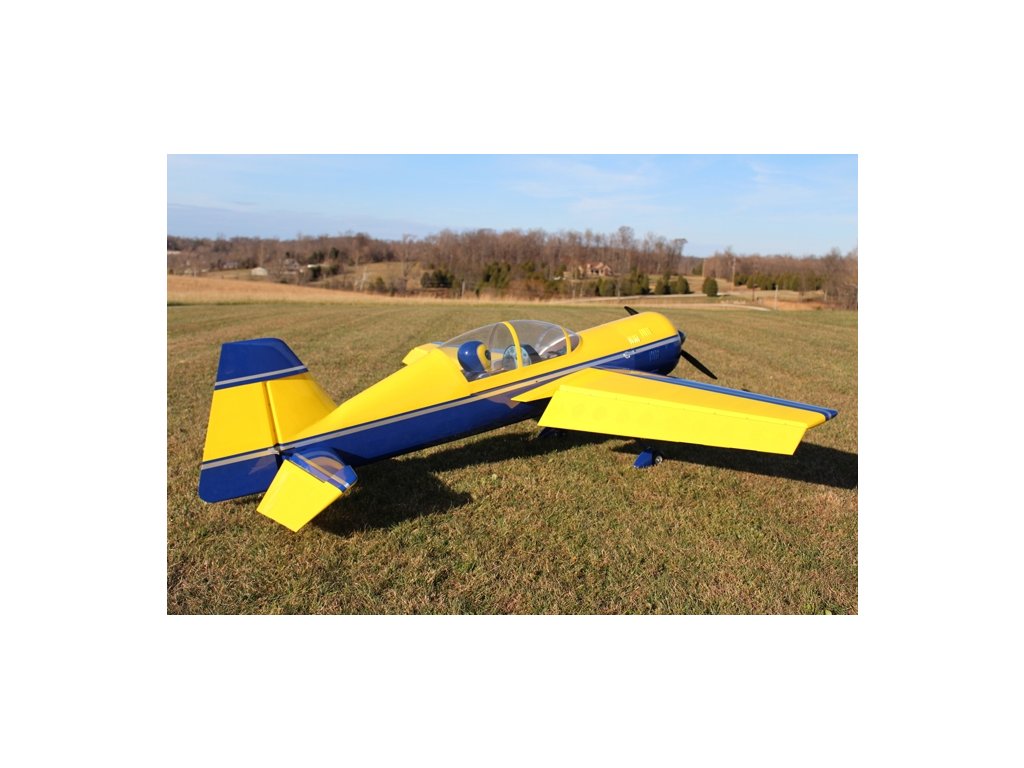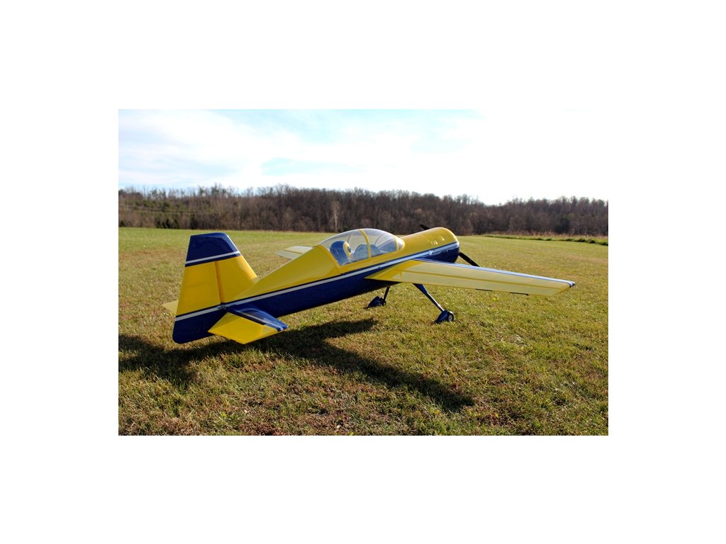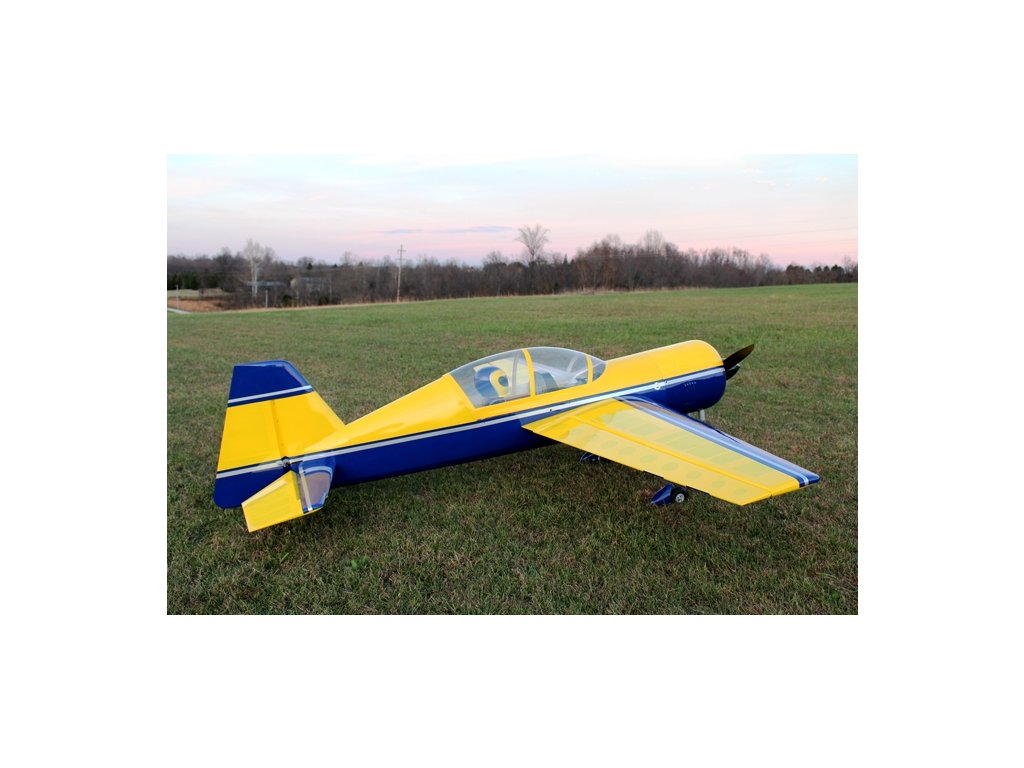 Sportovní polomaketa ruského akrobatického letadla pro pohon benzínovým motorem 85-130 ccm pro zkušené piloty pro létání klasické přesné i extrémní 3D akrobacie.