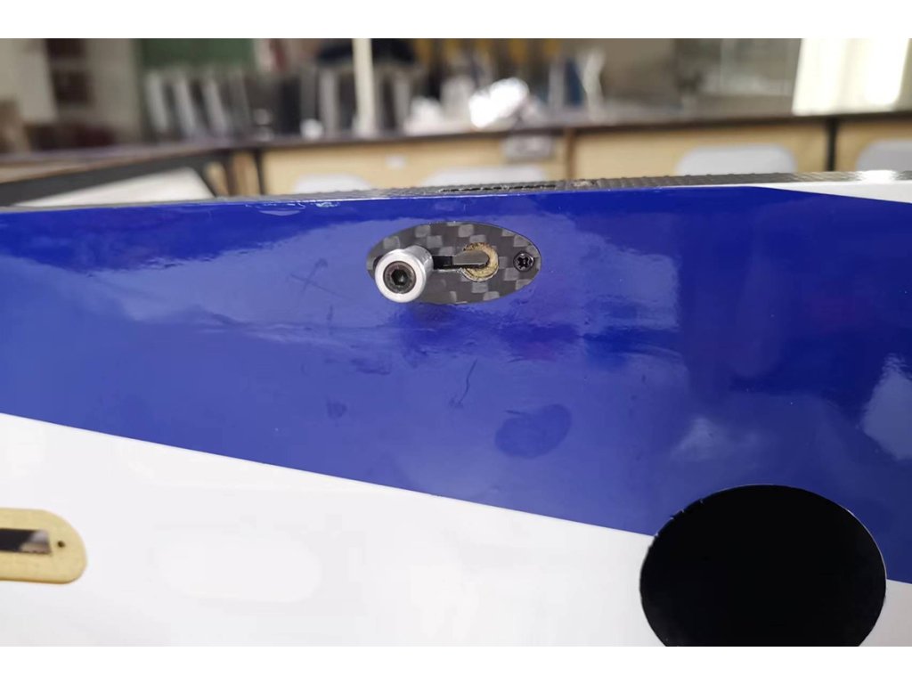 Dvoudílné křídlo se souměrným profilem (poloviny se nasouvají z boku na uhlíkovou trubkovou spojku) je rovněž klasické konstrukce s celobalsovým tuhým potahem. Křidélka s velkou plochou jsou ovládána 2 páry nebo trojicemi serv.