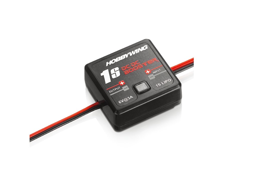 Z tohoto důvodu musejí auta v měřítku 1:12 používat speciální 1S regulátory s vestavěným vzestupným měničem napětí nebo musejí mít zvláštní přijímačový akumulátor, pokud regulátor nemá vzestupný měnič. S pomocí 1S DC-DC Boosteru se situace zcela mění. Při jeho použití není třeba zvláštní přijímačový akumulátor a odpadá tak nutnost nabíjení a údržby dalšího akumulátoru. Navíc jeho proudová zatížitelnost je větší než u BEC obvodů většiny běžných regulátorů pro auta této velikosti.
