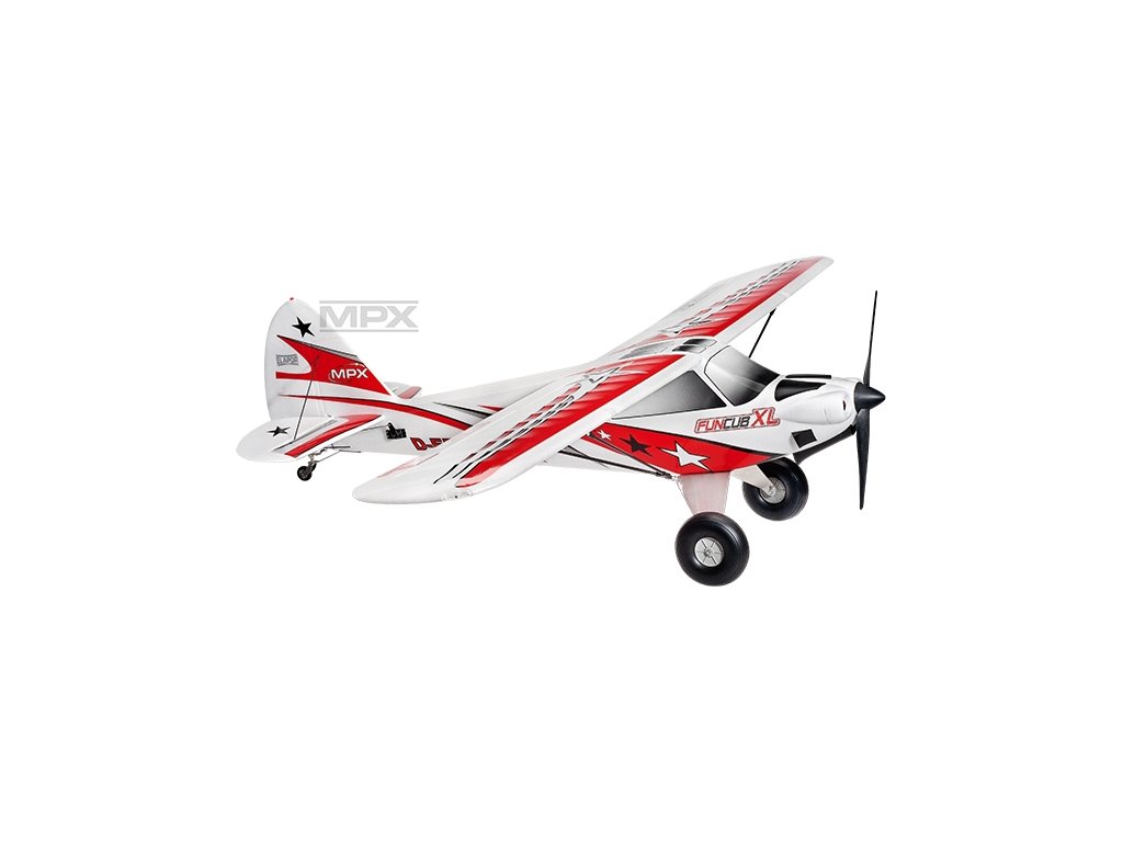 Tuning: Pro FunCub XL je k dispozici sada plováků (kat. č. #733098) s níž si užijete spoustu zábavy také u vody, #852004 Parašutista Alfréd a #73030 Sada světel POWER-MULTIlight s možností dálkového ovládání (vypnuto, zapnuta poziční světla + antikolizní majáky, zapnuta poziční světla + majáky + přistávací světla).