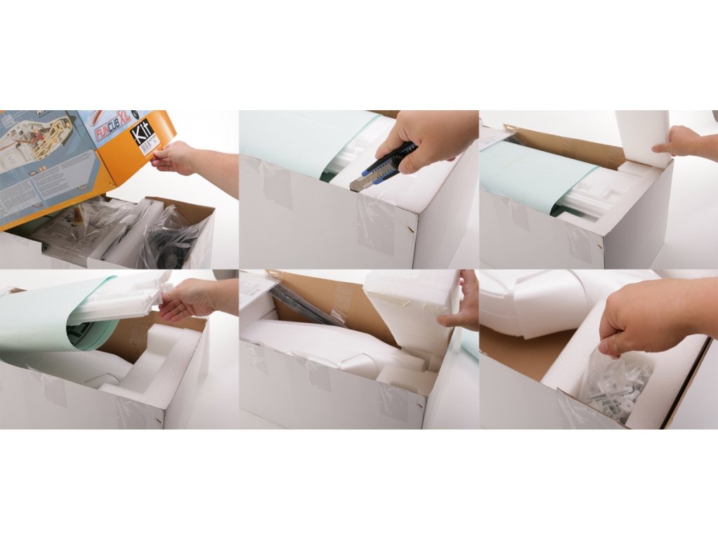 RR set obsahuje: sestavený trup, křídla a ocasní plochy z Elaporu s osazeným motorem, regulátorem a servy, sadu vzpěr, duralový podvozek s koly, vrtuli 15x8“ a podrobný návod ke stavbě a létání. Pytlík s příslušenstvím najedete skrytý ve výplni krabice (v polystyrenu) viz. fotografie.