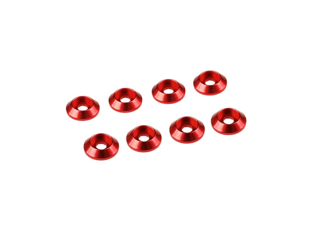 3 mm hliníkové kuželové podložky červené, 8 ks.