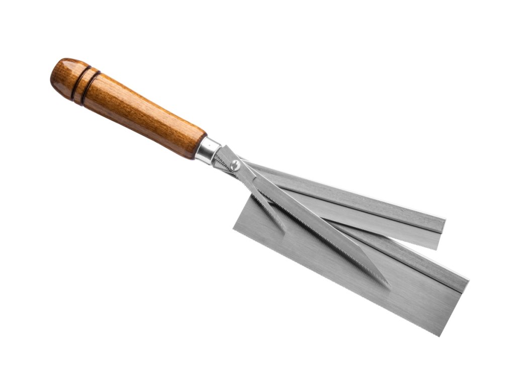 Sada obsahující tenčí válcovitou dřevěnou rukojeť a čtyři výměnné pilové listy ZONA: 36-050 ultratenká 52zubů/palec 114x11,1mm, 36-555 tenká široká 39,7x30,1mm, 32zubů/palec, 36-458 dlouhá děrovka 114mm, 24zubů/palec a 36-408 tenká děrovka o délce 57mm, 24zubů/palec. Náhradní listy se prodávají zvlášť.Doplňkové parametry