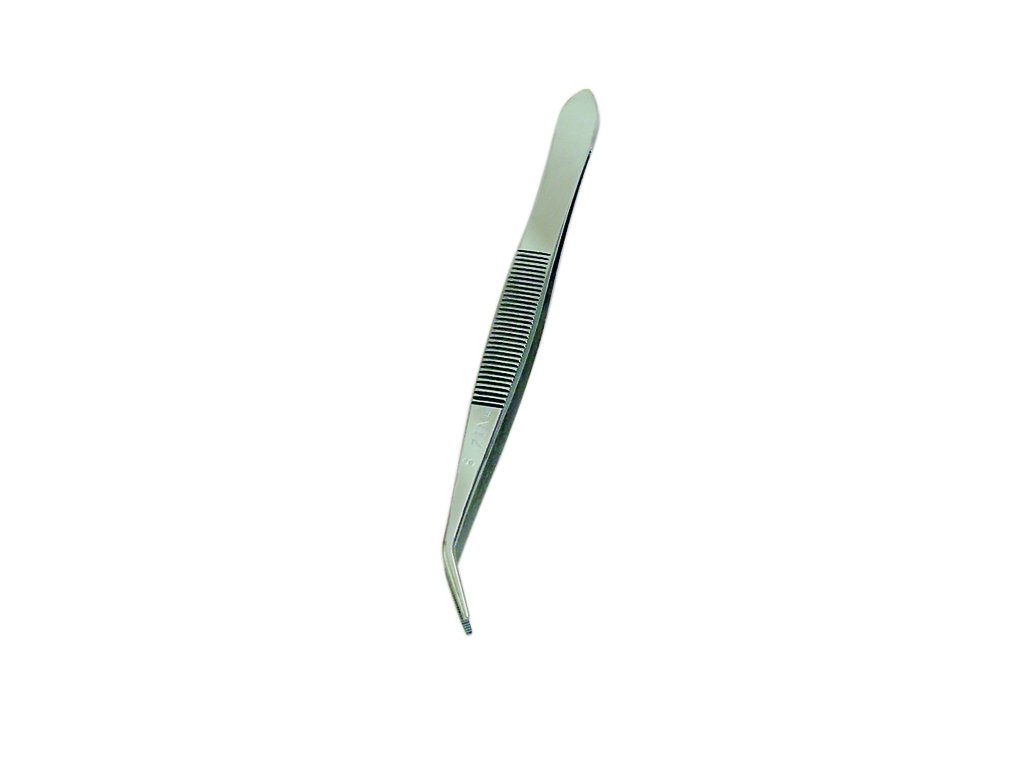 Pinzeta ZONA se zahnutými tenkými čelistmi o délce 108 mm.