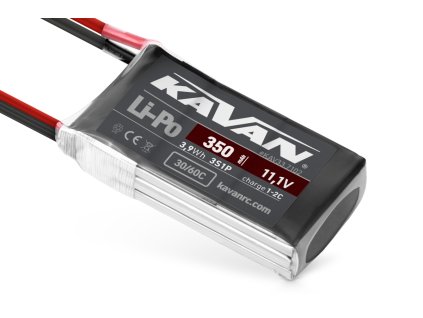 LiPo akumulátorová sada KAVAN s nabíjením do 2C a vybíjením 30/60C. Tříčlánek 3s1p 11,1 V 350 mAh, rozměry: 59x32x15mm, hmotnost 43g, servisní konektor JST-XH.