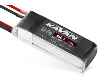 LiPo akumulátorová sada KAVAN s nabíjením do 2C a vybíjením 30/60C. Tříčlánek 3s1p 11,1 V 860 mAh, rozměry: 73x25x19mm, hmotnost 64g, servisní konektor JST-XH.