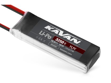 LiPo akumulátorová sada KAVAN s nabíjením do 2C a vybíjením 30/60C. Tříčlánek 3s1p 11,1 V 3250 mAh, rozměry: 136x42,5x20,5mm, hmotnost 245g, servisní konektor JST-XH.