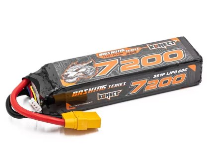 s XT-60 konektorem, kapacita 7200mAh, 60C vybíjecí proud (krátkodobě 120C), napětí 11,1V/3S, délka: 153mm, šířka: 45,5mm, výška: 28,0mm, váha: 415g