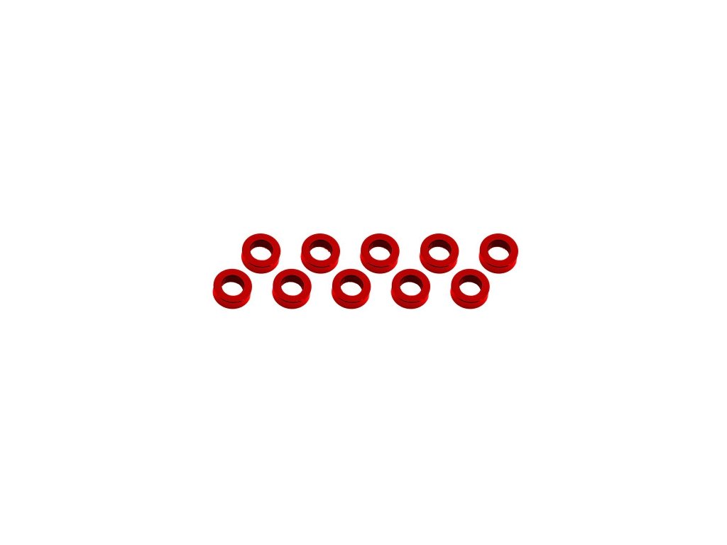 3x6x2mm hliníkové podložky červené, 10 ks.