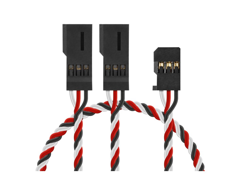 Kroucený Y-kabel dlouhý s konektory Futaba o délce 600 mm s PVC izolací, průřez vodičů 0,25 mm2. Speciálně navržené pro použití s digitálními servy.