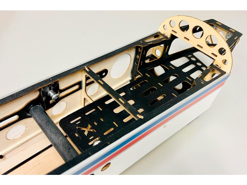 Trup modelu je klasické konstrukce z překližkových a balsových laserem vyřezávaných dílů s kompozitovými výztuhami s odnímatelným laminátovým motorovým krytem a odnímatelnou horní částí trupu s kabinou pro dokonalý přístup k pohonnému systému a RC vybavení. Motor se upevňuje v zadní montáži na překližkové krabicové lože.