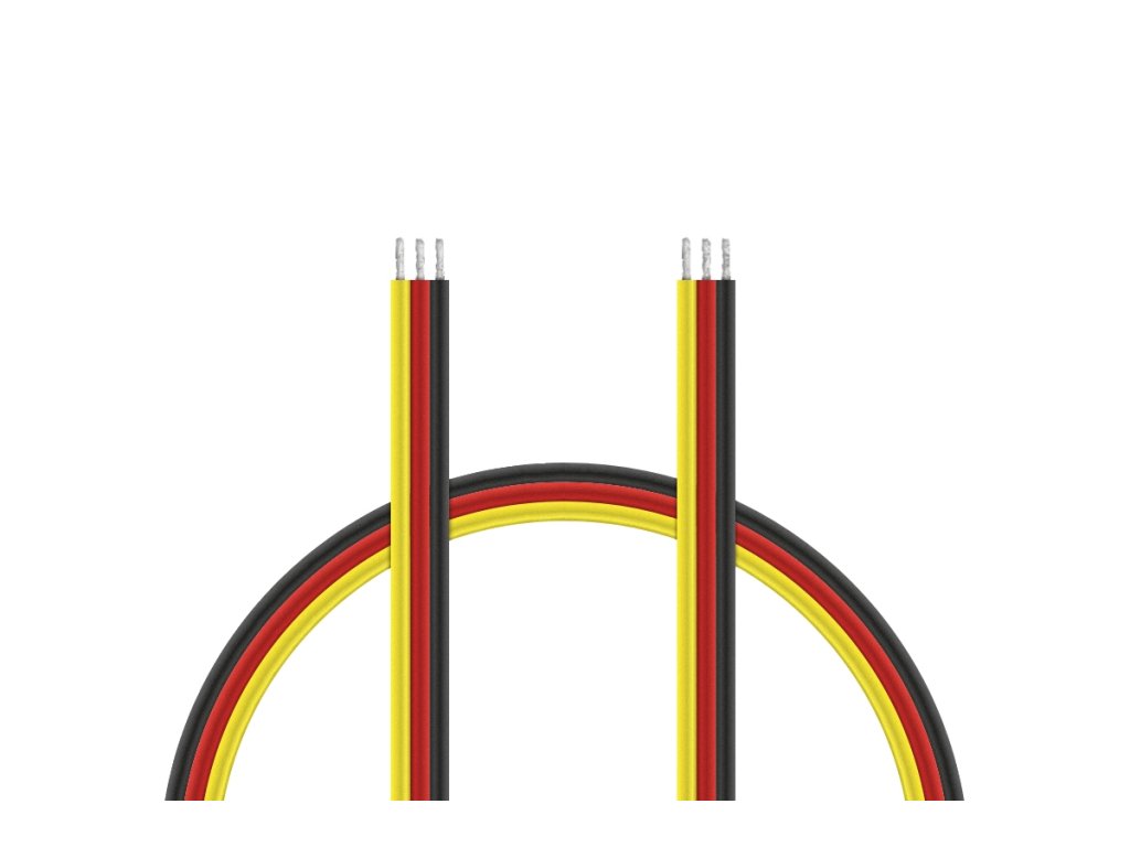 Plochý třížilový kabel tenký v barvách Hitec (černá/červená/žlutá) s PVC izolací, průřez vodičů 0,25 mm2. Vysoce ohebný, max. 48 V, 5A. Originální kabel používaný na servech Hitec.Doplňkové parametry