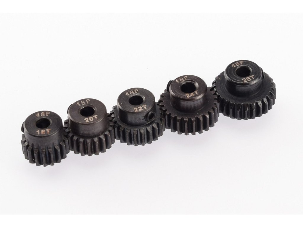 48DP ocelové pastorky, 5 ks. (18,20,22,24,26 zubů)