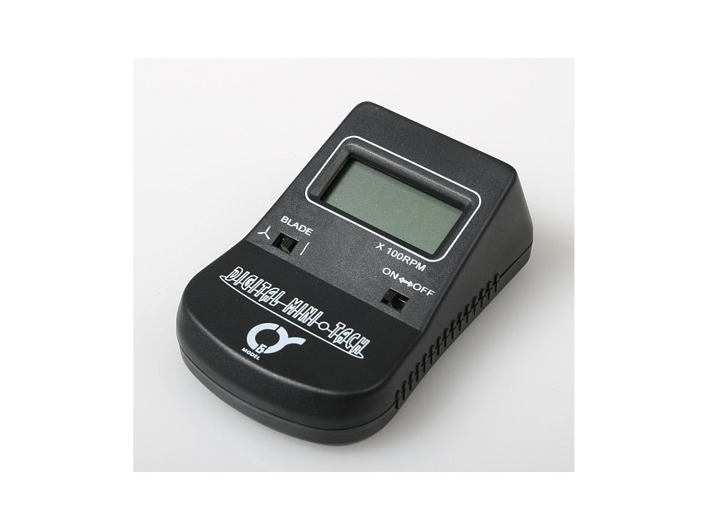 Kompaktní digitální otáčkoměr s optickým čidlem. Přepínač pro měření otáček dvou- a třílistých vrtulí, třímístný displej, rozsah měření do 29 000 ot./min, rozlišení 100 ot./min.
