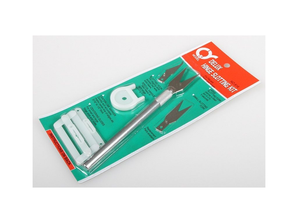Sada nářadí pro snadné zhotovování štěrbin a zářezů pro instalaci závěsů kormidel.