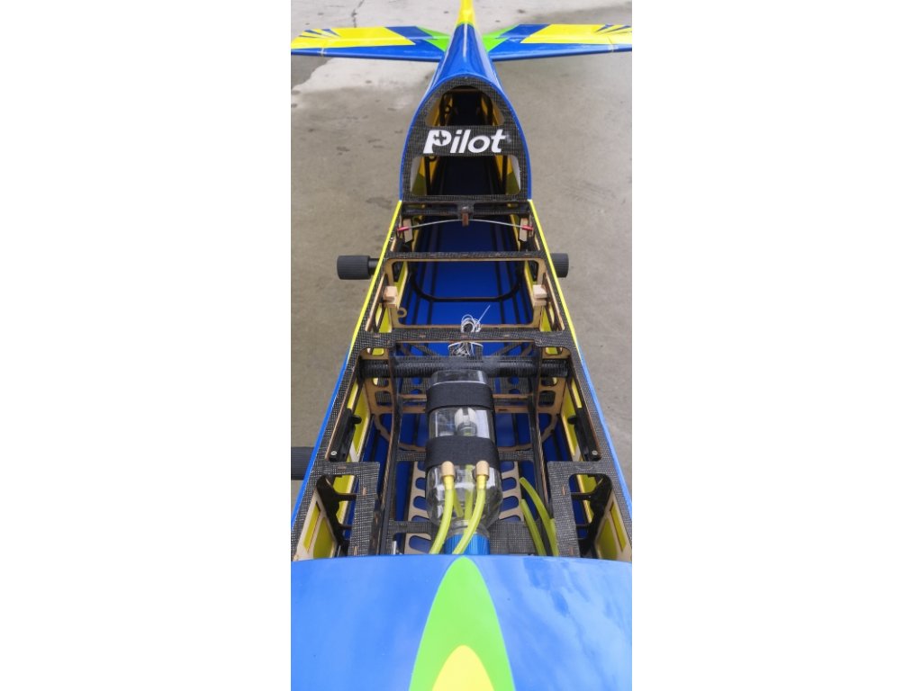 - Zesílený trup a křídla překližkou přelaminovanou uhlíkem a uhlíkovými nosníky.