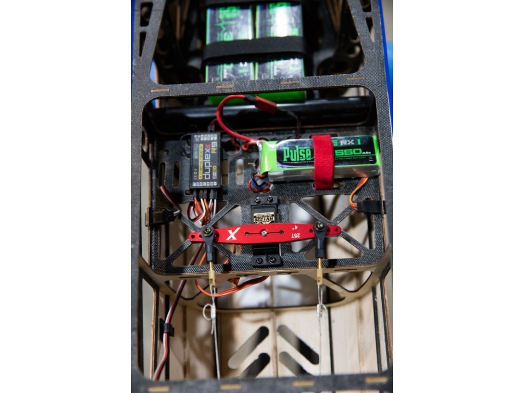 Pro ovládání modelu vyhoví nejméně šestikanálová počítačová RC souprava – možnost přesného nastavení „párových“ serv a naprogramování dvojích a exponenciálních výchylek ve správné velikosti je pro létání akrobacie – klasické přesné i extrémní 3D – zásadní.