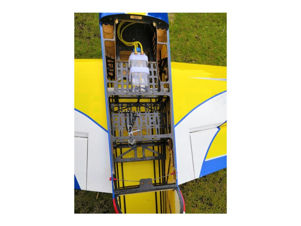 Uhlíkový podvozek,ostruha, trubka křídel, vrtulový kužel, Sklolaminátové páky kormidel, kryty kolPalivová nádrž, hadičky a tankovací ventil
