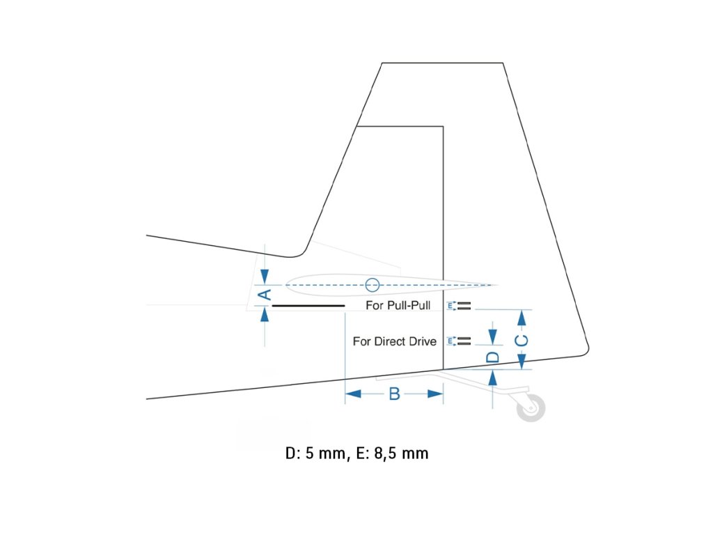 - Servo směrovky umístěné v zadní části trupu pod VOP - Náhon SOP táhlem