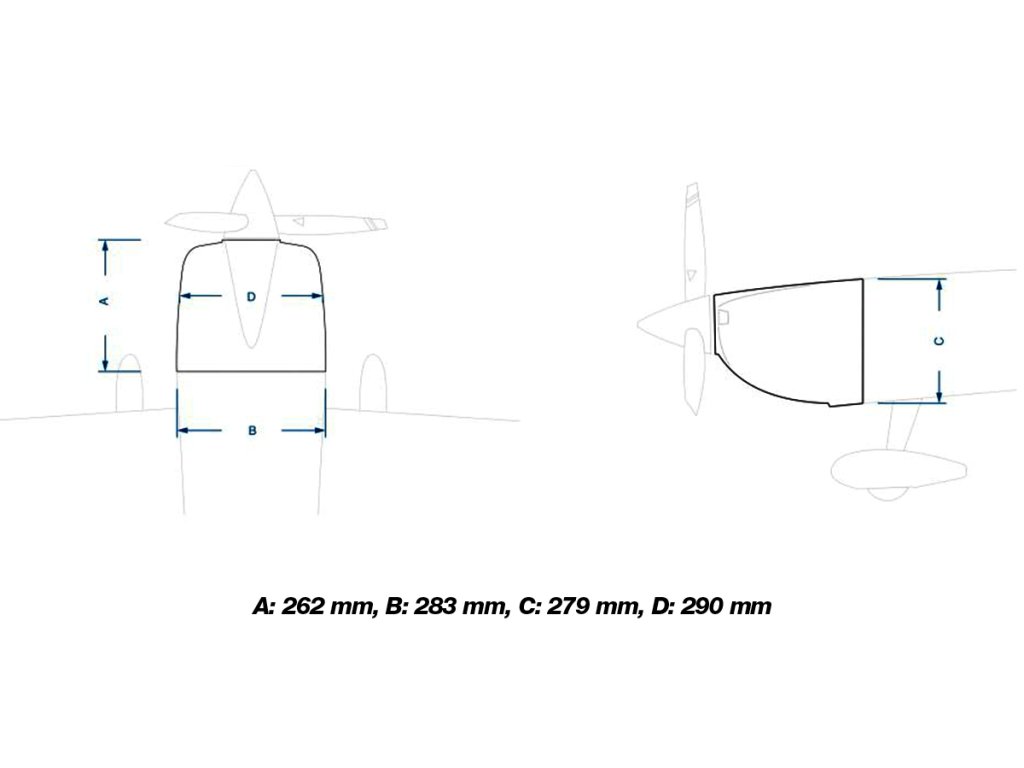 - spodní část motorového krytu z čirého plastu - umožňuje pohodlné vyměření otvorů pro výfuk a překlesnení na laminátový kryt motoru