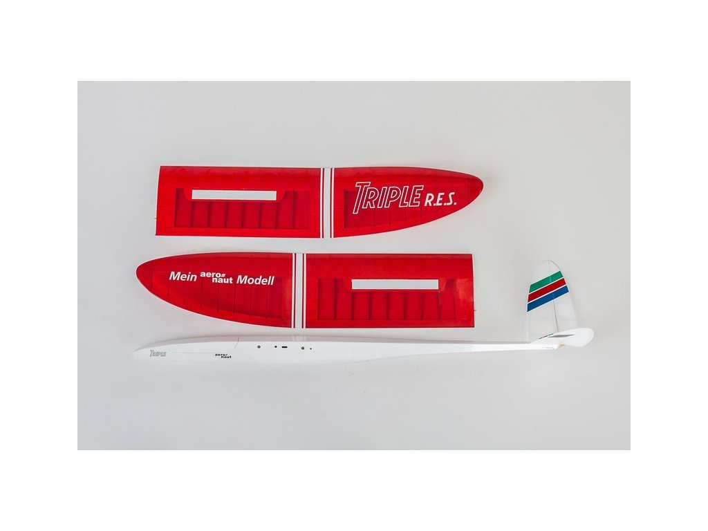 Tento zcela nový koncept kombinuje atraktivní trup s motýlkovou ocasní plochou (souprava obsahuje možnost E-power) s možností zvolit si typ křídla dle předpokládaného druhu letu. Každé křídlo se připojí k témuž trupu. Výkonné magnety drží křídla na svém místě a umožňují tak snadnou a rychlou změnu bez použití nástrojů.Triple Speed - délka křídla je 178 cm, rovné vzepětí křídel a dlouhá křidélka. Křídlová část má přímou spodní stranu, snadno se staví a je ideální i pro akrobacii a úctyhodnou maximální rychlost.Triple R.E.S. - délka křídla je 199 cm a výraznější tvar než "Triple thermic". Rádiem ovládaná pohyblivá ocasní plocha a křidélka, vše v souladu s požadavky R.E.S.Triple Thermic - délka křídla je 255 cm a je vybaveno křidélky a spoilery. Křídlová část je optimalizovaná pro termické stoupání a poskytuje vynikající letové vlastnosti a výkon.Elegantní trup kluzáku nabízí velmi dobré aerodynamické vlastnosti. Trup pro elektricky poháněný E-power má širší nos, který lze osadit 28mm-outrunnerem a nabízí prostor pro 3s-LiPo baterii s kapacitou 2500mAh. Obě verze mají magneticky odnímatelný kryt kabiny a odnímatelný kryt na spodní části trupu, který umožňuje přístup k ovládacím servům.Všechny tři verze modelu Triple jsou celodřevěného designu, přičemž kladou důraz na modelovou stavbu, která je u Aero-nautu dlouholetou tradici. Balsový trup s lehkým povrchem a dobře promyšlený koncept zajišťuje rychlý stavební proces s minimálním prostorem pro chybu. V-tail se skládá z přesně, laserem vyříznutých částí v podobě skládačky pro dosažení vynikajících výsledků. Křídla používají konvenční žebra a části a vyžadují pouze plochou stavební konstrukci. Náběhové hrany jsou sestavené komponenty a kombinují nízkou hmotnost s dobrou pevností.Dokonce i ti, kteří chtějí vyzkoušet stavbu modelů, uspějí s Triplem a mohou v krátkém časovém úseku vybudovat svůj vlastní větroň nebo větroň s elektrickým pohonem. Letové vlastnosti jsou vynikající a zajišťují, aby si zábavu užili i začátečníci nebo méně zkušení piloti. Tento kit obsahuje laserem vyřezané veškeré dřevěné součásti nutné k sestavení modelu, smrkové díly, bowdeny, ovládací táhla a balení spojovacích malých dílů. Podrobné stavební pokyny s grafikou a textem "krok za krokem" vám zodpoví všechny vaše otázky.Upozornění