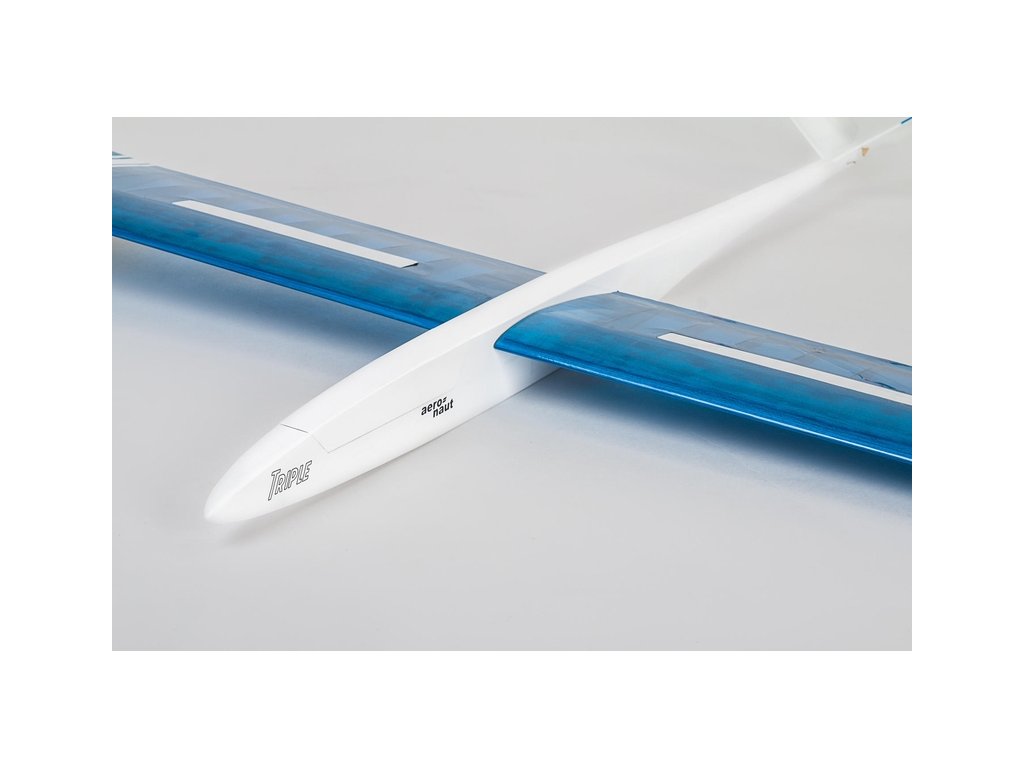 Tento zcela nový koncept kombinuje atraktivní trup s motýlkovou ocasní plochou (souprava obsahuje možnost E-power) s možností zvolit si typ křídla dle předpokládaného druhu letu. Každé křídlo se připojí k témuž trupu. Výkonné magnety drží křídla na svém místě a umožňují tak snadnou a rychlou změnu bez použití nástrojů.Triple Speed - délka křídla je 178 cm, rovné vzepětí křídel a dlouhá křidélka. Křídlová část má přímou spodní stranu, snadno se staví a je ideální i pro akrobacii a úctyhodnou maximální rychlost.Triple R.E.S. - délka křídla je 199 cm a výraznější tvar než "Triple thermic". Rádiem ovládaná pohyblivá ocasní plocha a křidélka, vše v souladu s požadavky R.E.S.Triple Thermic - délka křídla je 255 cm a je vybaveno křidélky a spoilery. Křídlová část je optimalizovaná pro termické stoupání a poskytuje vynikající letové vlastnosti a výkon.Elegantní trup kluzáku nabízí velmi dobré aerodynamické vlastnosti. Trup pro elektricky poháněný E-power má širší nos, který lze osadit 28mm-outrunnerem (například AXI 2212/20 V2 LONG) a nabízí prostor pro 3s-LiPo baterii s kapacitou 2500mAh. Obě verze mají magneticky odnímatelný kryt kabiny a odnímatelný kryt na spodní části trupu, který umožňuje přístup k ovládacím servům.Všechny tři verze modelu Triple jsou celodřevěného designu, přičemž kladou důraz na modelovou stavbu, která je u Aero-nautu dlouholetou tradici. Balsový trup s lehkým povrchem a dobře promyšlený koncept zajišťuje rychlý stavební proces s minimálním prostorem pro chybu. V-tail se skládá z přesně, laserem vyříznutých částí v podobě skládačky pro dosažení vynikajících výsledků. Křídla používají konvenční žebra a části a vyžadují pouze plochou stavební konstrukci. Náběhové hrany jsou sestavené komponenty a kombinují nízkou hmotnost s dobrou pevností.Dokonce i ti, kteří chtějí vyzkoušet stavbu modelů, uspějí s Triplem a mohou v krátkém časovém úseku vybudovat svůj vlastní větroň nebo větroň s elektrickým pohonem. Letové vlastnosti jsou vynikající a zajišťují, aby si zábavu užili i začátečníci nebo méně zkušení piloti. Tento kit obsahuje laserem vyřezané veškeré dřevěné součásti nutné k sestavení modelu, smrkové díly, bowdeny, ovládací táhla a balení spojovacích malých dílů. Podrobné stavební pokyny s grafikou a textem "krok za krokem" vám zodpoví všechny vaše otázky.Upozornění