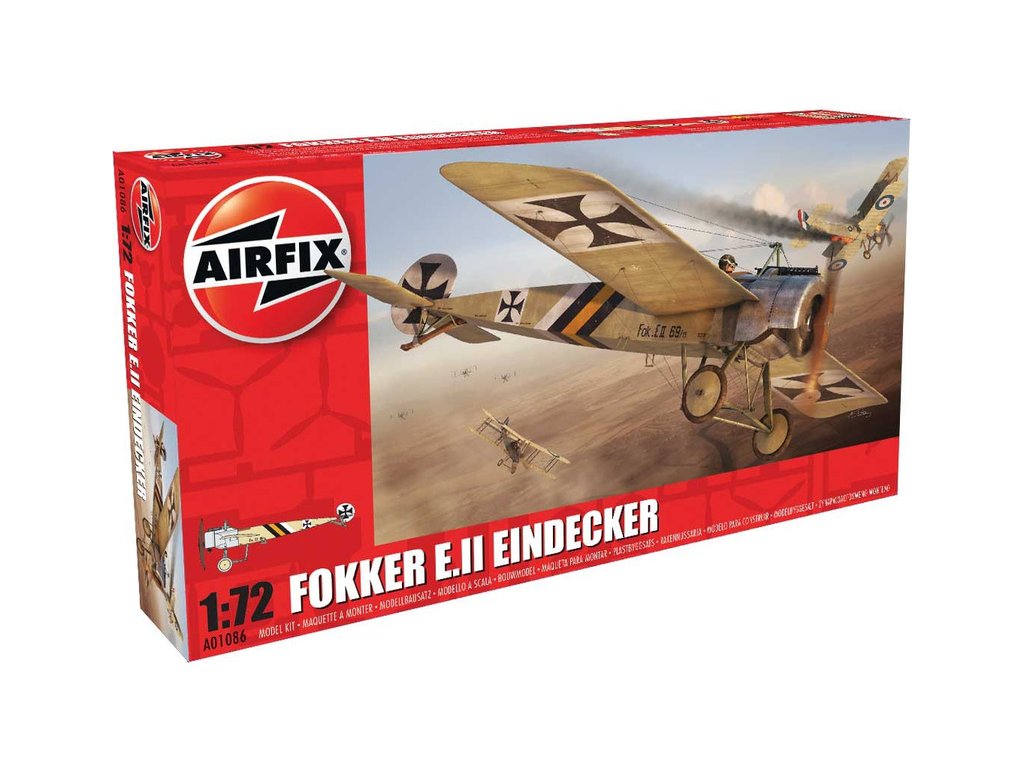 Plastikový model Airfix A01086 - letadlo Fokker E.II Eindecker ke slepení. Měřítko 1:72, rozpětí 140 mm, 35 dílků, stavební obtížnost 2.