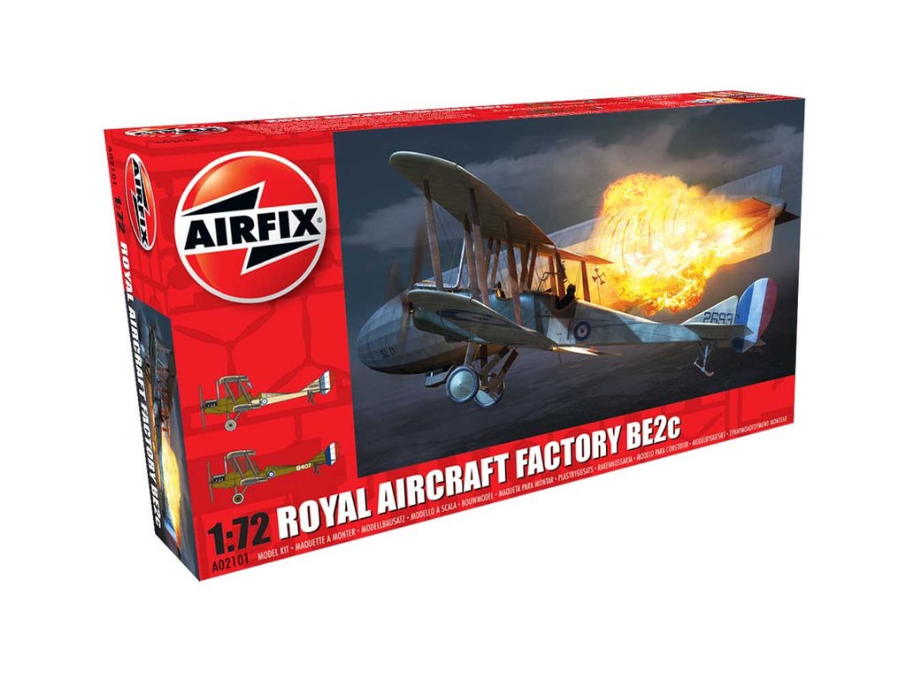 Plastikový model Airfix A02101 - letadlo Royal Aircraft Facility BE2C v měřítku 1:72 ke slepení. Stavebnice obsahuje 54 dílků, rozpětí křídel 156 mm, obtížnost 2.