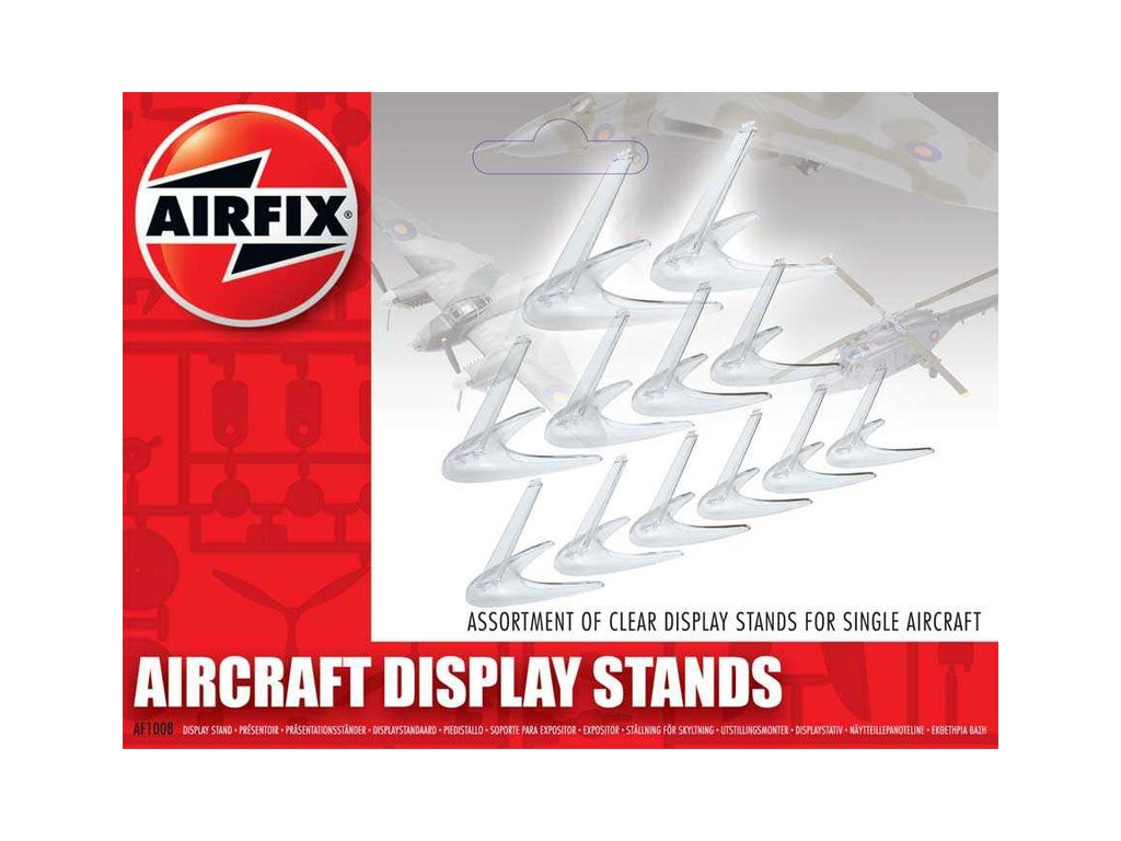 Chcete své hotové modely letadel vystavit raději za letu? Airfix AF1008 - sada stojánků na modely Vám s tím pomohou. Sada obsahuje tři průhledné plastové stojany pro modely letadel v měřítkách 1:72.