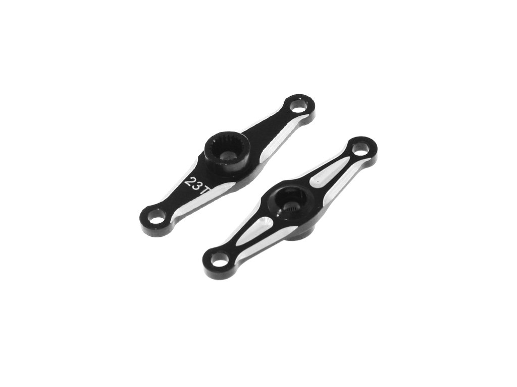 Toto je hliníková oboustranná servopáka Ultimate Racing 23 zubů s dvojitým ramenem a je určena pro použití se servy SANWA / KO / JR / AIRTRONICS. Mezi středem čepu a každým spojovacím otvorem je 18 mm a jsou vyrobeny z černého eloxovaného hliníku 7075-T6.