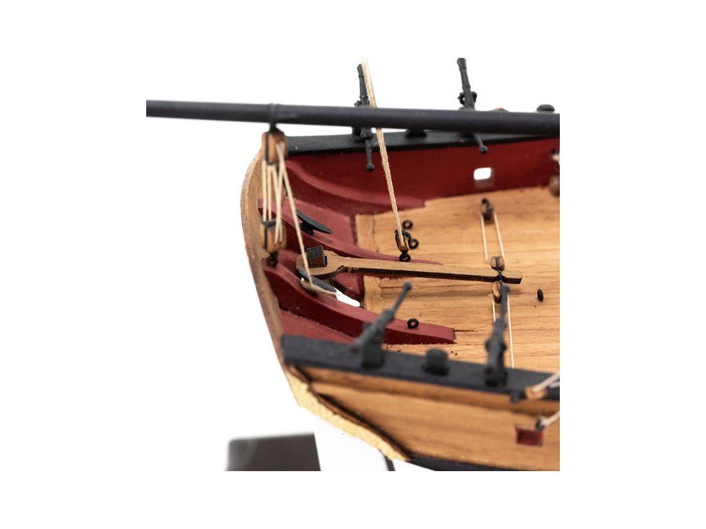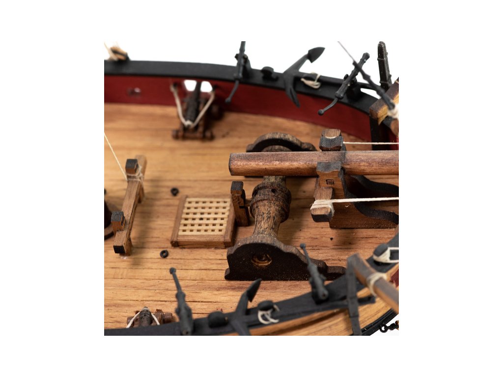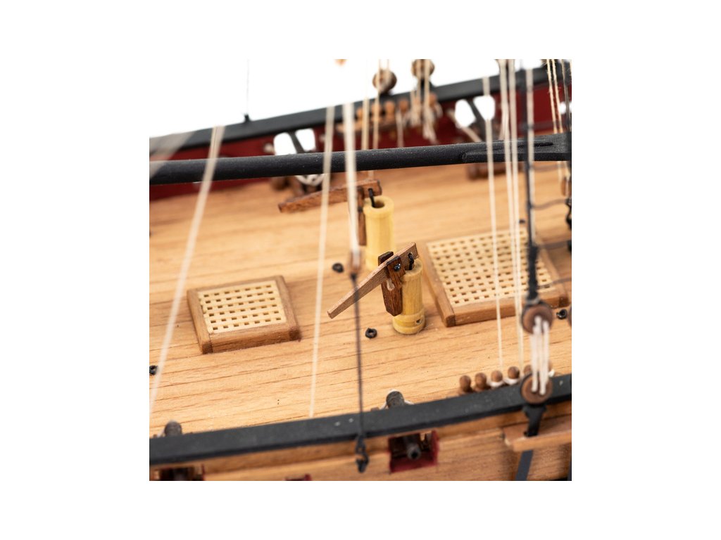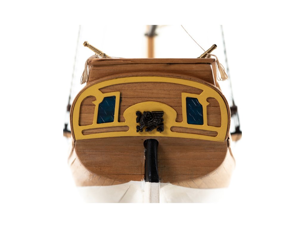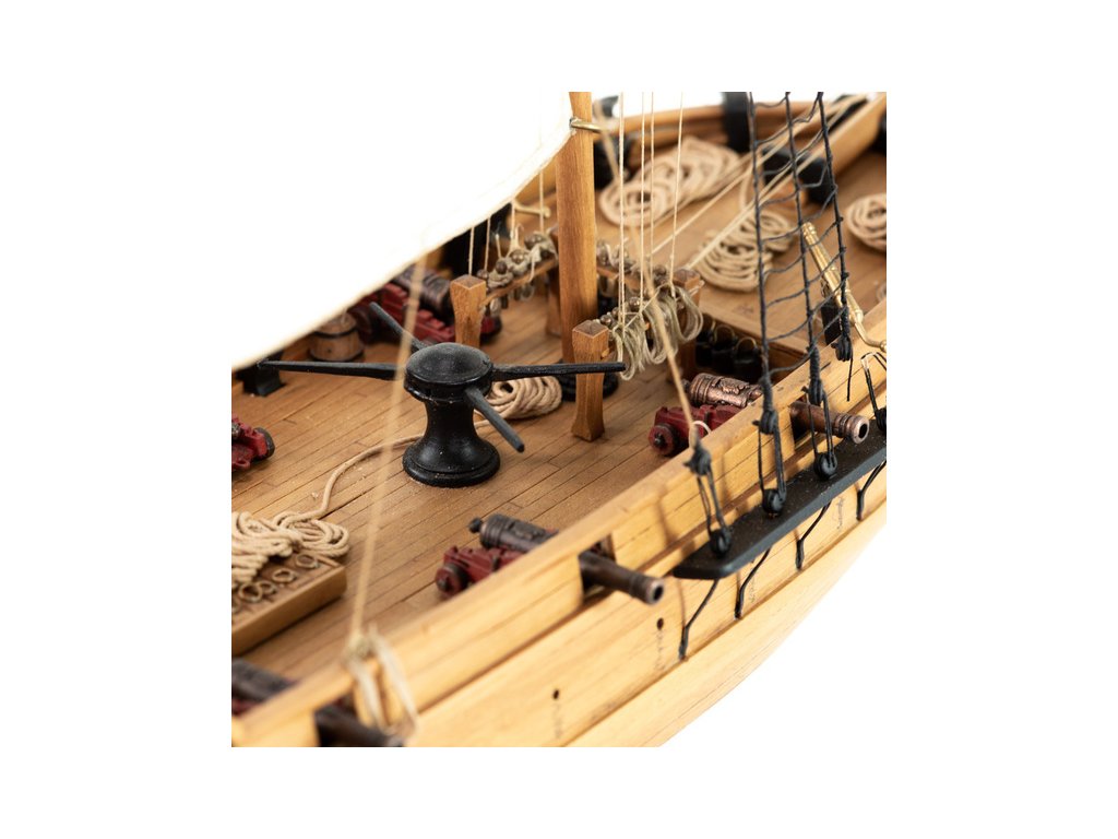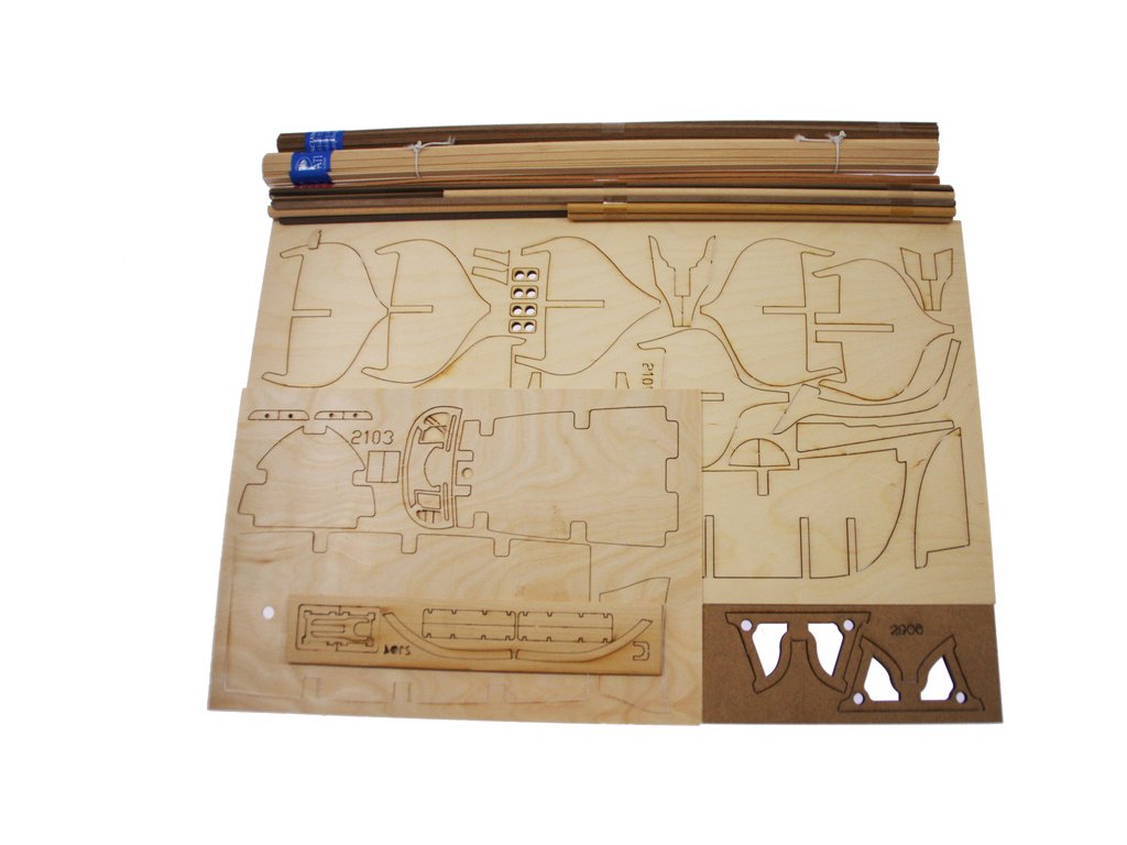 Balení obsahuje sadu překližkových dílů, sadu dřevěných lišt o různém průřezu, sáčky s drobnými díly, materiál na plachty a lanoví, lišty na stožáry, kování, doplňky, sadu výkresů a vícejazyčný manuál.