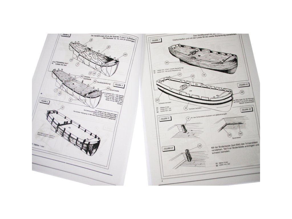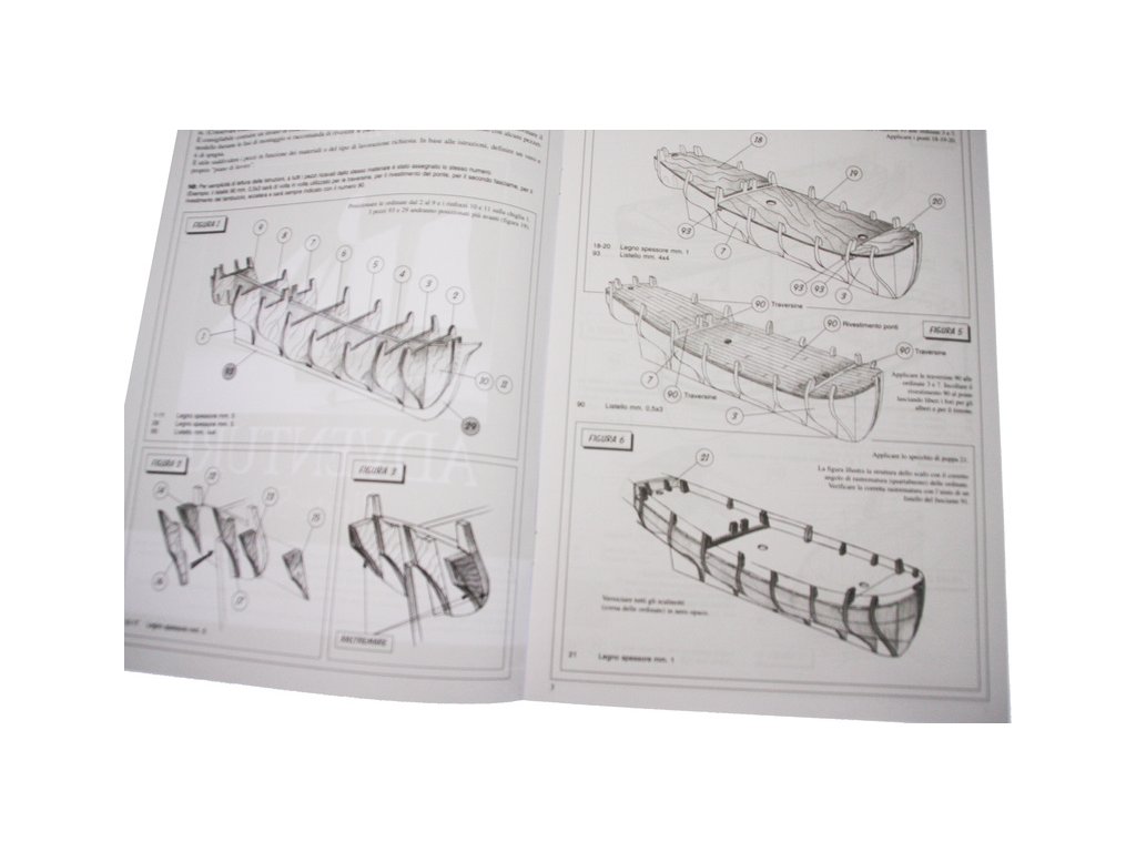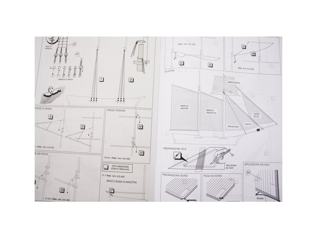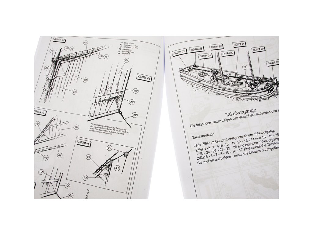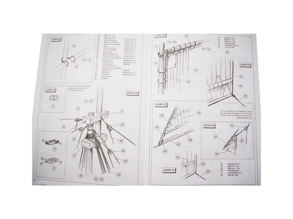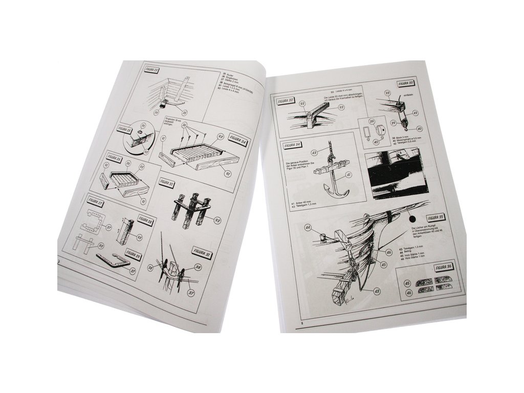 Set obsahuje kompletní sadu výkresové dokumentace modelu v měřítku 1:1 s obrázky jednotlivých detailů. Na výkrese jsou v měřítku nakresleny montážní sestavy, jejich kompletace a to včetně stěžňů a ráhen a způsob vázání lanoví. Vícejazyčný postup stavby rámcově upravuje logické sestavení jednotlivých komponentů.
